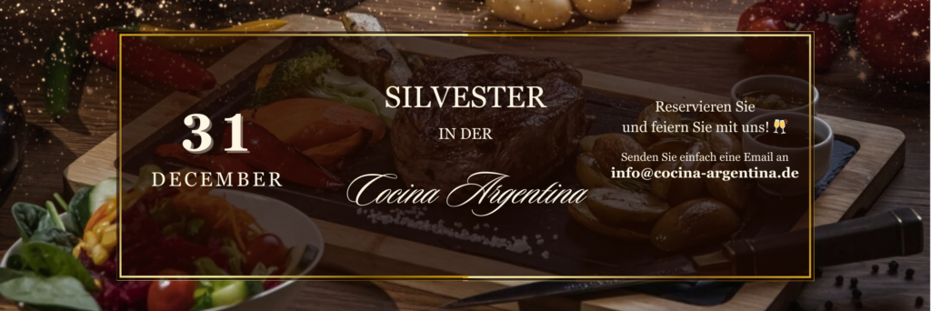 wir laden Sie herzlich dazu ein, den Jahreswechsel bei uns in Cocina Argentina zu feiern! Freuen Sie sich auf ein festliches argentinisches Dinner und stimmungsvolle Livemusik, die Sie durch den Abend begleitet. Unser authentisches Menü und die musikalische Unterhaltung bringen Ihnen das Flair Argentiniens näher und machen den Abend zu einem besonderen Erlebnis.